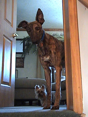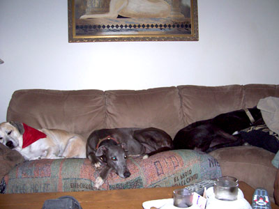 Jazzy and her brothers. Her brothers say, "No one messes with our sister!" Vino is camera shy! |